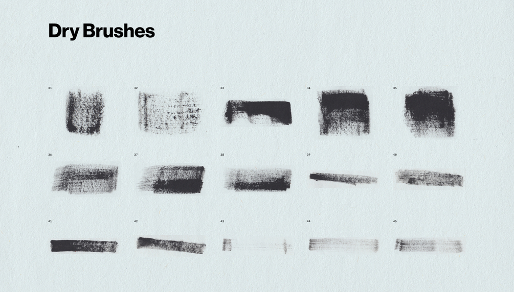 When you download this pack, you receive a variety of dry brush resources, including high-quality JPEG images and brushes. The JPEGs can be used for backgrounds, effects, and overlays, while the brushes are compatible with both Photoshop and Procreate. This allows you to seamlessly integrate these tools into your projects and customize them to create unique designs.